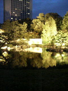 ↓下の画像はその時撮った、ライトアップした会場の「日本庭園」。