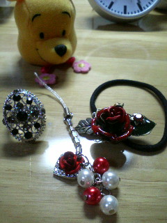 右のものは髪を結ぶゴムなのですが、私は普段ほとんど髪を結ぶ事が無いのですが、これまた赤い薔薇で可愛かったので買ってしまいました;